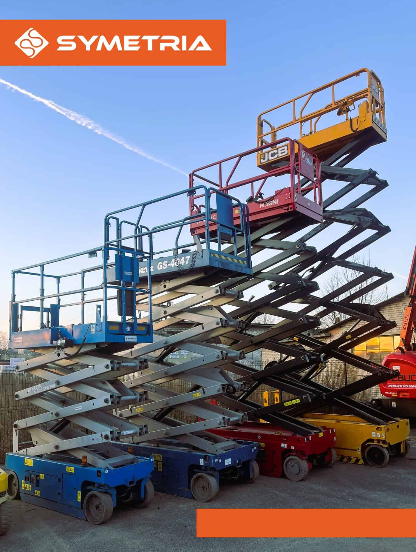 Dysponujemy nowoczesną flotą maszyn JLG, Genie, Manitou. Podstawiamy sprzęt bezpośrednio na plac budowy. Zapewniamy serwis 24h.