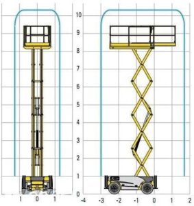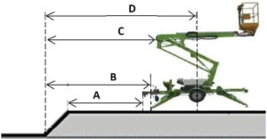 #238. W oparciu o przedstawiony wykres pola pracy wskaż, która z pozycji uniesienia platformy jest niemożliwa: