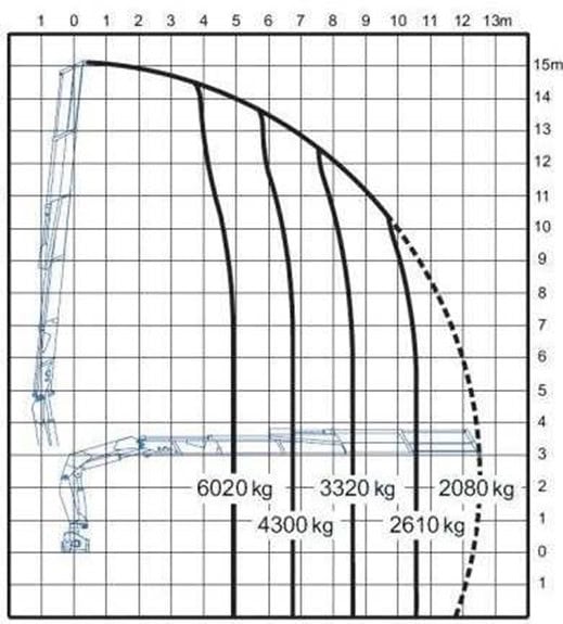 #246. W oparciu o przedstawiony diagram określ na jaką maksymalną wysokość można bezpiecznie podać ładunek o masie 1290 kg: