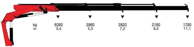 #228. W oparciu o przedstawiony diagram określ na jaką maksymalną odległość można bezpiecznie podać ładunek o masie 3980 kg: