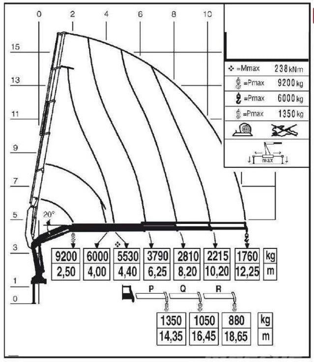 #238. W oparciu o przedstawiony diagram wskaż poprawne parametry pracy żurawia: