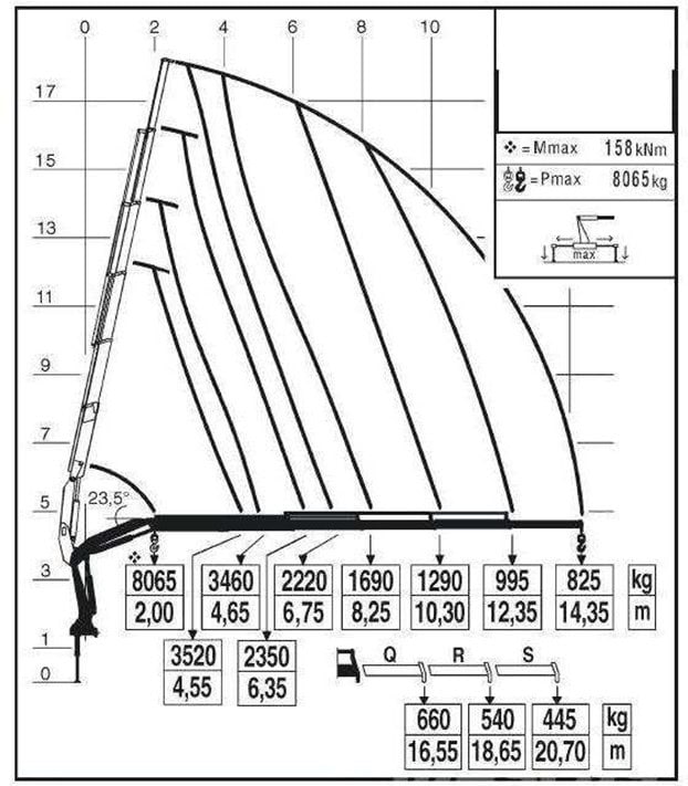 #235. W oparciu o przedstawiony diagram wskaż poprawne parametry pracy żurawia: