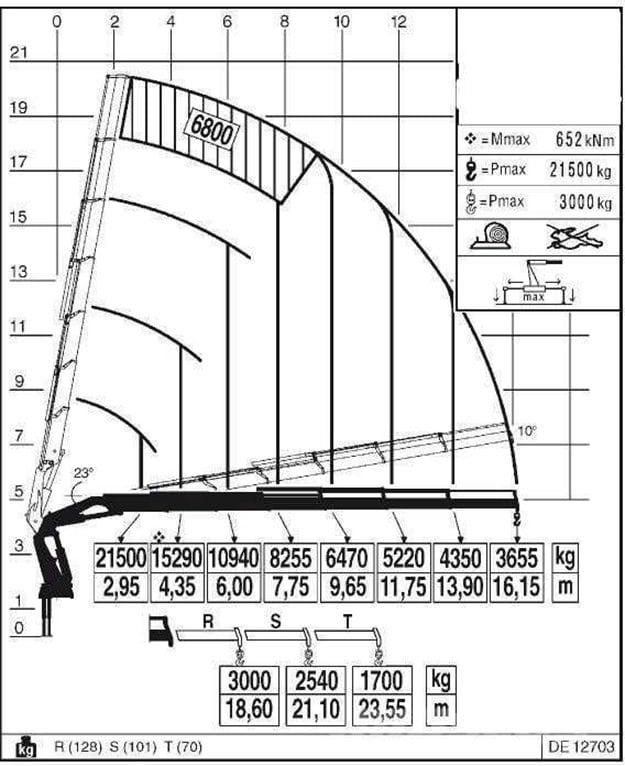 #252. W oparciu o przedstawiony diagram określ na jaką maksymalną wysokość można bezpiecznie podać ładunek o masie 6470 kg: