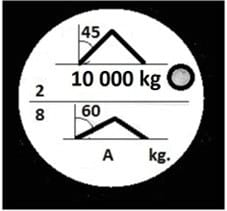 #270. W oparciu o przedstawiony rysunek wskaż wartość A (DOR w oparciu o kąt a ) dla zawiesia dwucięgnowego: