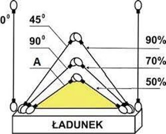 #316. W oparciu o przedstawiony rysunek określ maksymalną masę ładunku jaką można podnieść przy pomocy zawiesia 4 cięgnowego: