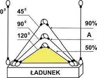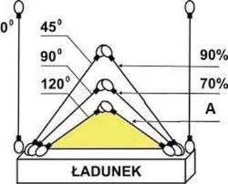 #268. W oparciu o przedstawiony rysunek wskaż wartość A (kat a) dla zawiesia dwucięgnowego: