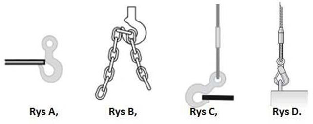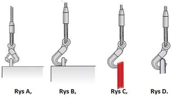 #294. Wskaż, który ze sposobów zamocowania haka jest nieprawidłowy: