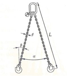 #271. W oparciu o przedstawiony rysunek wskaż wartość A (DOR w oparciu o kąt a ) dla zawiesia dwucięgnowego: